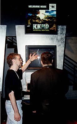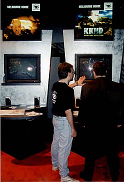 | Beam Software / Melbourne House went to the Electronic Entertainment Expo (that's E3 to you 'n' me) in Atlanta and gosh darn we had a great time! The pics you see below show the KKnD area, slapped together with no expense spared by our distributors Electronic Arts - what great guys! We brought with us an in-production version of KKnD Xtreme and everyone who saw it thought it was way cool. Some people just wouldn't leave our stand! |